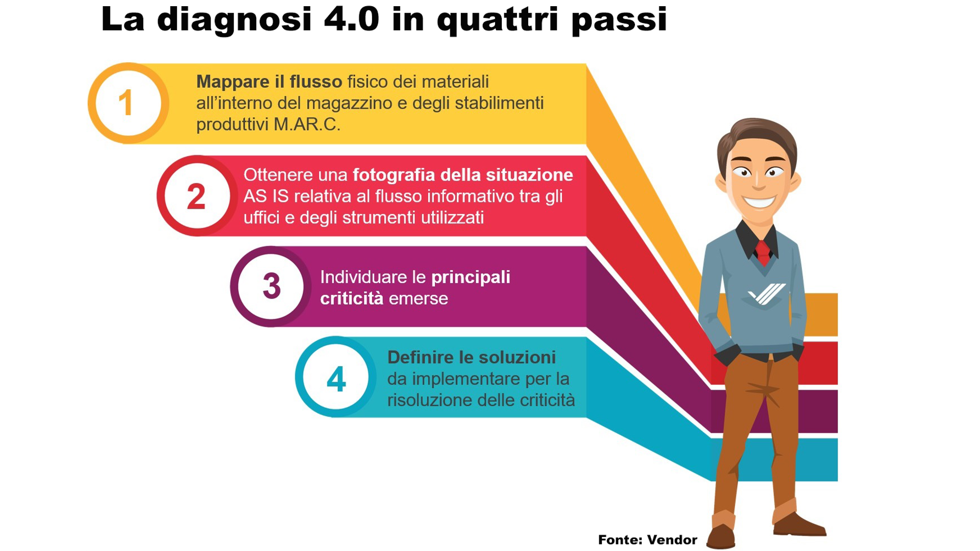 La trasformazione digitale ha quindi rivisto tutti i processi interni. E leva di tutto il percorso è stata la Diagnosi in chiave 4.0. «Si tratta di un’analisi che Vendor mette in atto nell’azienda per delineare il livello non solo di digitalizzazione, ma anche di ottimizzazione dei processi interni. I processi, infatti, possono anche essere ottimizzati dal punto di vista logico - spiega Carraro -, ma non dal punto di vista esecutivo. In base alla nostra esperienza, infatti, la maggior parte delle aziende che visitiamo non sono ottimizzate dal punto di vista dei processi, quindi, quello che facciamo in prima battuta è rilevare dove ci sono i gap, basandosi sulla ricerca dei cosiddetti “7 sprechi” della lean production. La Diagnosi 4.0 di fatto è un assessment basato sulle logiche della lean production».