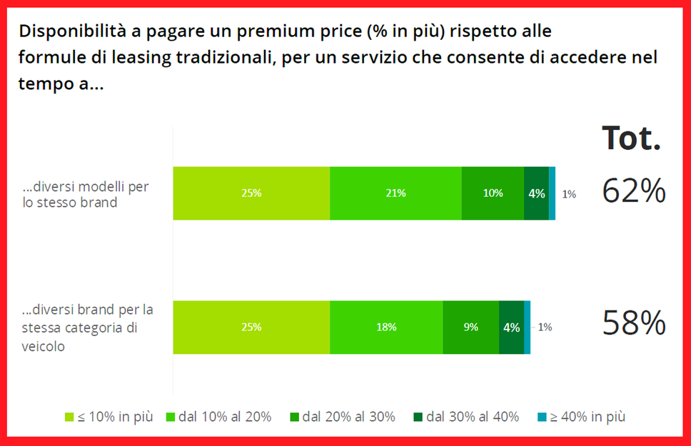 La componente digitale e tecnologica, dunque, sarà sempre più importante per differenziarsi dai competitor e conquistare nuove quote di mercato. C’è un dato in più che emerge dallo studio: sei italiani su dieci sarebbero disposti a pagare un sovrapprezzo per usufruire di servizi di infotainment, ma anche per avere sistemi digitali per prenotare e pagare un parcheggio (56%), ottenere aggiornamenti software (54%) o beneficiare di offerte promozionali per servizi e prodotti connessi all’itinerario percorso (44%). «Un sovrapprezzo che - precisa Barbieri - si aggirerebbe su un valore massimo di 400 euro».