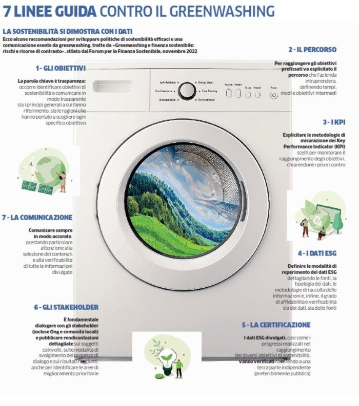 Ecco in conclusione alcune raccomandazioni per sviluppare politiche di sostenibilità efficaci e una comunicazione esente da greenwashing, tratte da «Greenwashing e finanza sostenibile: rischi e risorse di contrasto», stilato dal Forum per la Finanza Sostenibile, novembre 2022