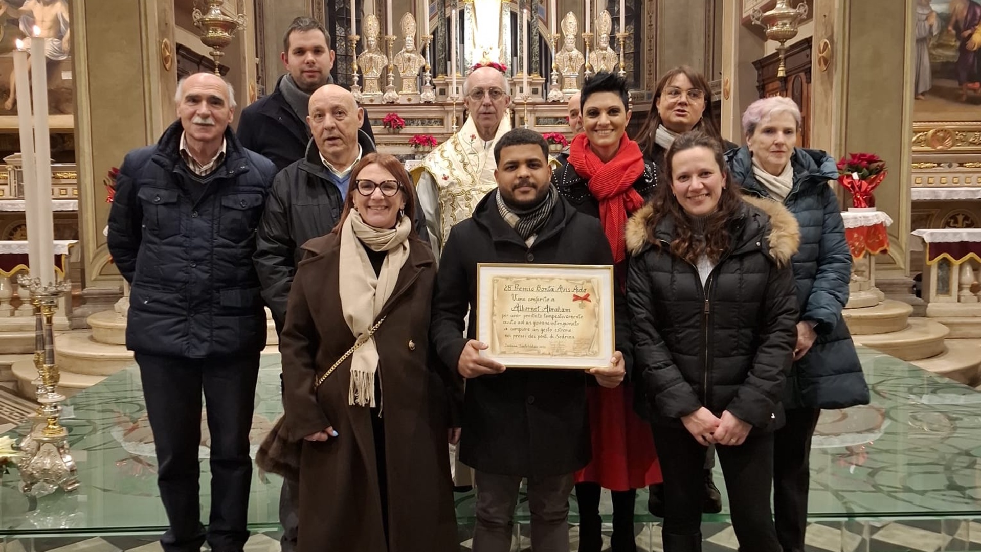 Nella chiesa parrocchiale gremita di persone, Abraham (accompagnato dalla fidanzata Karlenis, dalla mamma Davis e dal fratello Sabdiel) è stato a lungo applaudito. «Un gesto di eccezionale coraggio e sensibilità che ha salvato una vita – sottolineano i presidenti di Avis e Aido –. Il riconoscimento che quest’anno è arrivato alla 28esima edizione vuole premiare persone della nostra comunità che si distinguono per atti di bontà e solidarietà a favore del prossimo».
