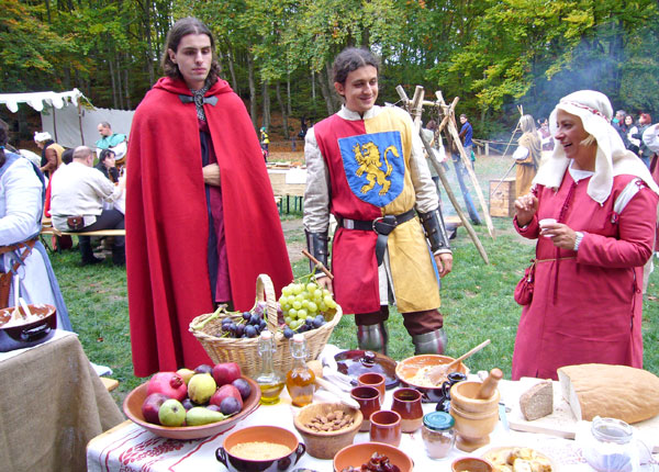 Dal meriggio al far della sera fino all’una di notte, la Corte di Fontanellato invita a rivivere una festa medievaleggiante tra sbandieratori, arcieri, falconieri, fanti, duellanti e armigeri mentre il profumo delle carni alla brace nel mercato dei vivandieri invoglia a degustare sapori d’altri tempi all’ombra del Castello e nelle locande del centro storico che propongono menù tematici. Sabato 23 agosto dalle 15.30 attorno alla Rocca Sanvitale di Fontanellato – Bandiera Arancione del Touring Club, Città d’Arte e Cultura, Cittaslow – gli spettatori faranno un duplice viaggio nel tempo in quei secoli affascinanti che spaziano dall’undicesimo secolo fino al Rinascimento. Si alza il sipario sull’evento La Spada nella Rocca dalle 15.30 all’1 di notte. I bambini potranno provare l’emozione di maneggiare un arco storico ricurvo imparandone l’arte e i segreti da Mastro Ivaldo da Torsana, Ferdinando Bracco da Tor dei Rovi o dalla bella Silvia da Pietrascura. I più curiosi potranno vedere da vicino guarnizioni, usberghi, camagli, spade, daghe, indumenti dei vassalli. Gli appassionati assisteranno a veri e propri duelli che riprendono le tecniche di combattimento descritte da manuali dell’epoca, come il Flos Duellatorum di Fiore Dei Liberi. Viaggio nel Medioevo. Tutto attorno alla Rocca dalle 15.30 all’1 di notte sarà infatti protagonista una grande animazione storica, a ingresso libero animata dalla Compagnia Il Leone Rampante di Torrechiara, adatta a grandi e piccini. L’evento è co-organizzato dal Comune di Fontanellato e dall’Associazione di commercianti Fontanellato Centro in collaborazione con Ascom Confcommercio di Parma. Viaggio nel Rinascimento: Danze e Delizie alla Corte – Ricordanze di Sapori. All’interno nella Rocca, dalle 20.30, si alza invece il sipario sulle “Ricordanze di Sapori” (ingresso a pagamento, con prenotazione obbligatoria, tel. 0521/823221-829055) che saranno ispirate al tema rinascimentale “Danze e Delizie di Corte”, con possibilità di visita alla Sala di Diana e Atteone in castello affrescata dal Parmigianino nel 1524. Inchini e volteggi per auspicar il favore della Gran Contessa Paola Gonzaga, signora della Rocca. Tra i piaceri sublimi della tavola imbandita s’invola la notte stellata…Una serata magica d’altri tempi! L’evento è organizzato dal Comune di Fontanellato e dall’Associazione Castelli del Ducato di Parma e Piacenza. Un menù raffinato firmato dallo chef del Ristorante Tre Pozzi solleticherà il gusto dei commensali: si inizia con un aperitivo con stuzzichini, antipasti, tartara di salmone con crostini dorati. Due i primi piatti: riso con gamberi di fiume e zucchine e tortelli di melanzane in guazzetto di pomodoro fresco e basilico. La gola non potrà resistere al secondo di carne: filetto alle erbe fini con pomodorini gratinati. Per dessert sarà servito un semifreddo al croccante in salsa al cioccolato caldo. Caffè con Piccola Pasticceria. I vini che verranno serviti in tavola sono: Ortrugo dei colli Piacentini “Maria Poggi Azzali”, Gutturnio dei colli Piacentini “Maria Poggi Azzali”. La cena storica prevede animazione proposta dall’associazione Fontana Lata di Fontanellato con coreografie a cura di Alessandra Montanini. La Spada nella Rocca. Attorno al Castello: rievocazione medievale dalle 15.30 all’1 di notteMercanti, cavalieri, musici, danzatori, sbandieratori, arcieri, popolani vivandieri in costume accoglieranno turisti dei tempi moderni, curiosi e visitatori: l’affresco corale della Festa Medioevale è anche l’occasione per conoscere meglio Fontanellato nei suoi aspetti storici ed enogastronomici che ricalcano le caratteristiche gustose di un’antica tradizione. La Festa invita a un viaggio d’atmosfera e ambientazione che - prendendo spunto dalle testimonianze storiche - ripropone un’Europa fuori dal periodo delle invasioni barbariche, connotata dal primato in fatto di tradizione, cultura e scienze. Il centro storico e l’ingresso del Castello – lungo il ponte levatoio in muratura - saranno illuminati da torce e fiaccole. Una suonatrice di liuto diffonderà dolci melodie tra i passanti, regalando note d’altri tempi. Menù tematici in locande e ristoranti del centro storico. Il pubblico potrà degustare dalle 18.30 – nei locali, locande, ristoranti, caffè del centro storico (menù a pagamento) - cibi semplici ma gustosi, ad esempio taglieri di formaggi e salumi (Parmigiano Reggiano, caciotte, coppa, salame, Culatello), carni arrosto come pollo e stinco di maiale, zuppe di legumi, piatti con farro e cereali, pane nero, crostini. E il galateo non è d’obbligo: chi vorrà potrà fare un balzo indietro nel tempo e mangiare alla carta senza posate. Per grandi e piccoli verranno proposti nelle gelaterie gusti curiosi, come gelato alla viola e gelato magia d’oriente allo zenzero e cannella. Inoltre, in alcuni esercizi commerciali, i locandieri saranno in costume d’epoca. Zuppa sul fuoco e vino speziato nell’accampamento dei vivandieriUno spaccato di vita medievale verrà proposto dall’accampamento dei vivandieri: i visitatori potranno ritrovare personaggi in costume impegnati in attività domestiche, come cuocere la zuppa sul fuoco o la carne sulla griglia, impastare il pane o preparare il vino speziato. A corredo di queste attività, non mancherà l’esposizione di prodotti naturali ormai dimenticati e di antiche spezie. Manufatti in legno e terracotta completeranno l’allestimento del campo militare del "Leone Rampante". Tiro con l’ArcoSe tenendo in mano un arco scopri di cosa è fatto un uomo... sei pronto a scoccar quel dardo come un arciere antico. Utilizzando ricostruzioni di archi storici "long bow e ricurvi", si riscopre l’antica tecnica del tiro istintivo. Lo proporranno gli Arcieri della Compagnia Il Leone Rampante in centro storico. In piazza Verdi verrà proposta per bambini e ragazzi una sezione didattica sull’uso delle armi bianche. Invito a 